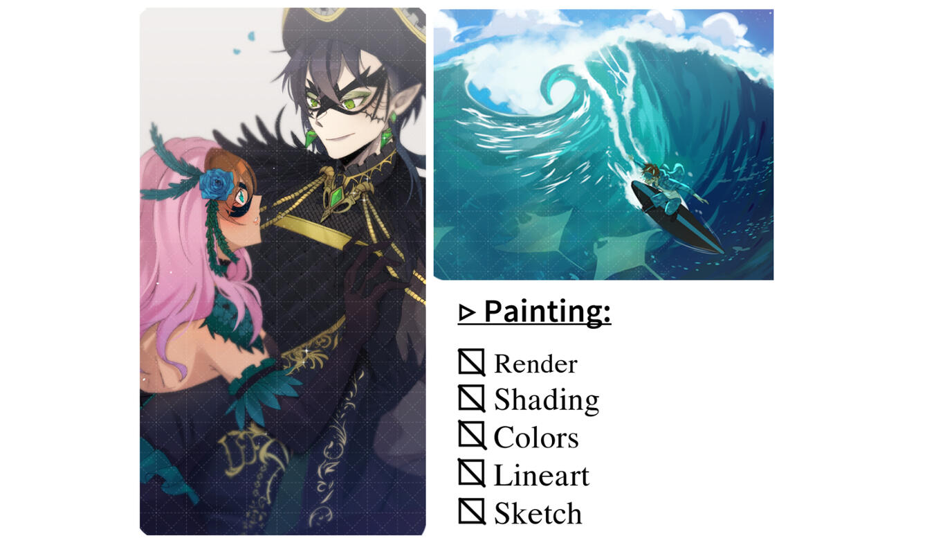 > Painting and Chibi: $30 ( maximum is 4 characters) No more than 4 characters in a canvas